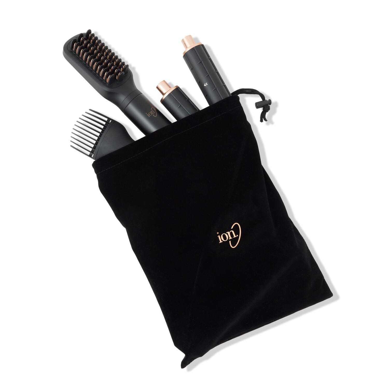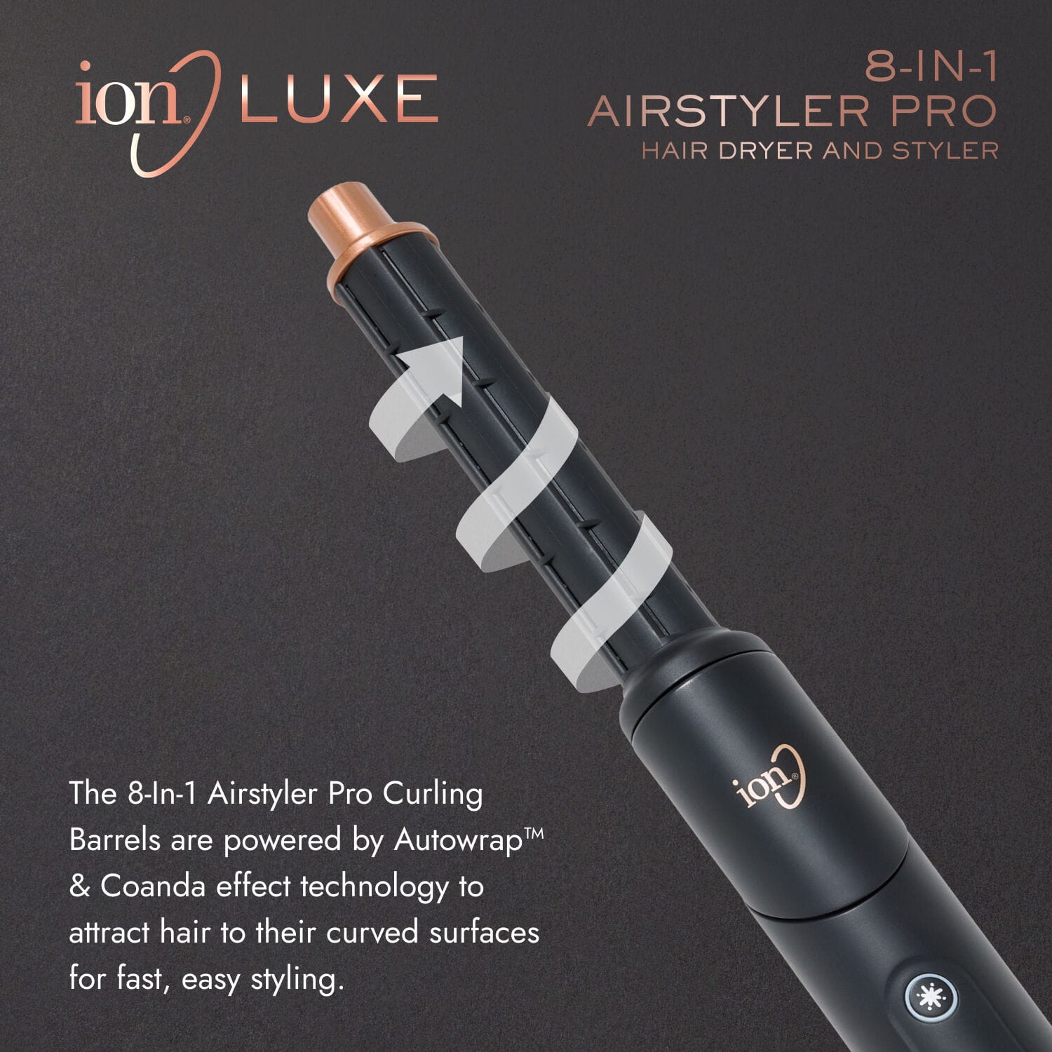 Meet your new hair hero — the ion Luxe 8-In-1 Airstyler Pro. This multi-styler boasts nine interchangeable attachments for every look: a concentrator, diffuser, smoothing brush, oval brush, volumizing pik and two sets of curling barrels with left and right direction.